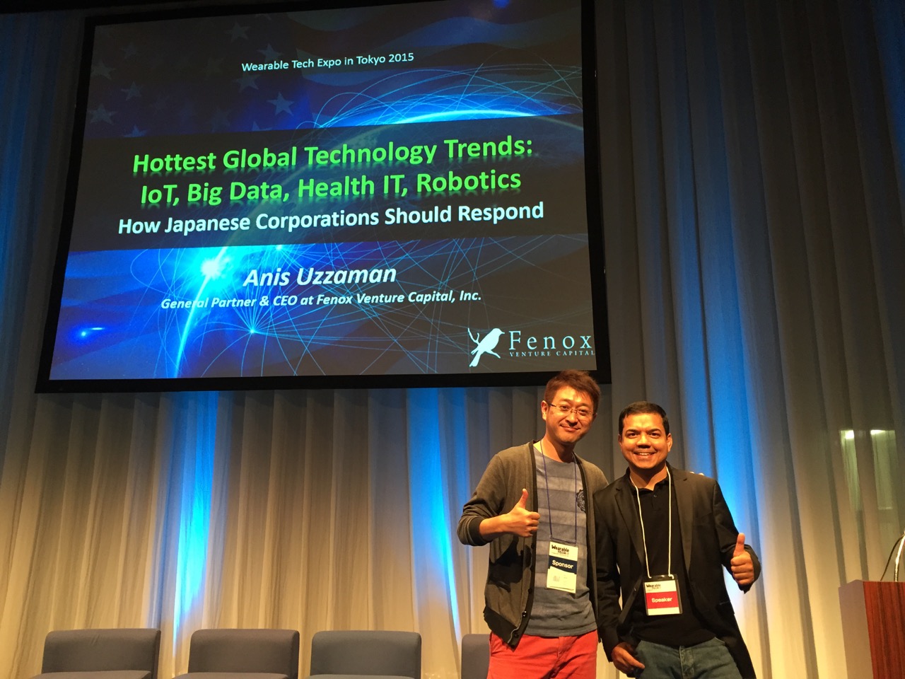 Wearableのイベントといっても、今年は「IoT」や「VR」もテーマとして盛り込んでおり、堀江さんや、室伏広治さん、中野信子さん、夏野剛さんほか、たくさんの有識者の方々とも、濃い内容のセッションが実現できて、やっている僕ら側も、本当に楽しかったです。
